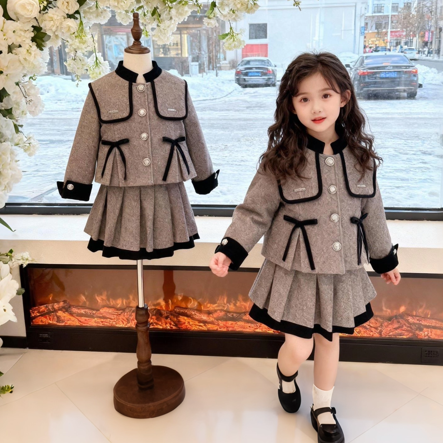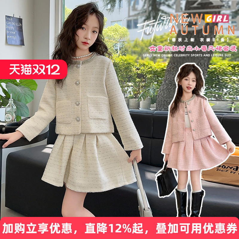 女童小香风套装秋冬2025新款超洋气短款外套背心裙子小女孩两件套