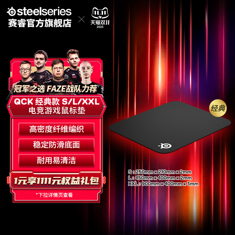 SteelSeries赛睿Qck 经典款S/L电竞游戏鼠标垫天然橡胶FPS用桌垫