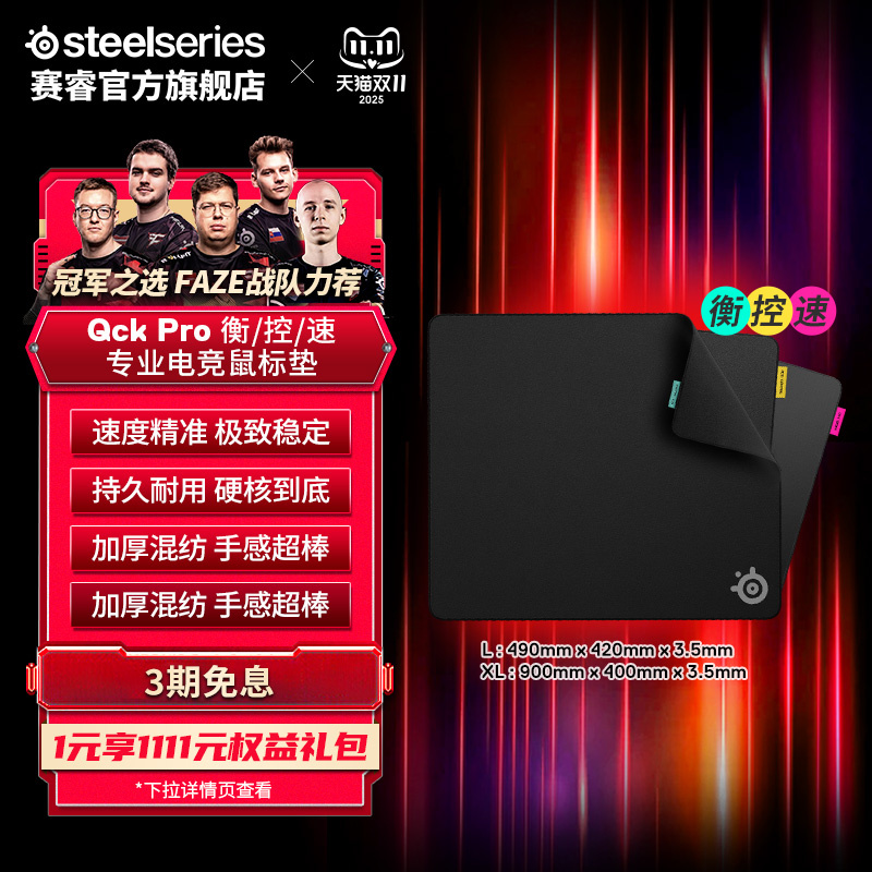 SteelSeries赛睿QCK Pro电竞游戏鼠标垫加厚混纺锁边Perf速/衡/控