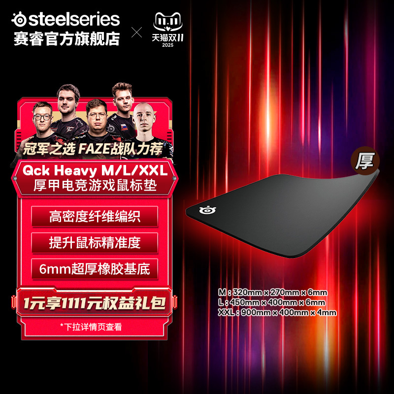 SteelSeries赛睿Qck Heavy鼠标垫电竞游戏加厚FPS专用天禄Jee同款