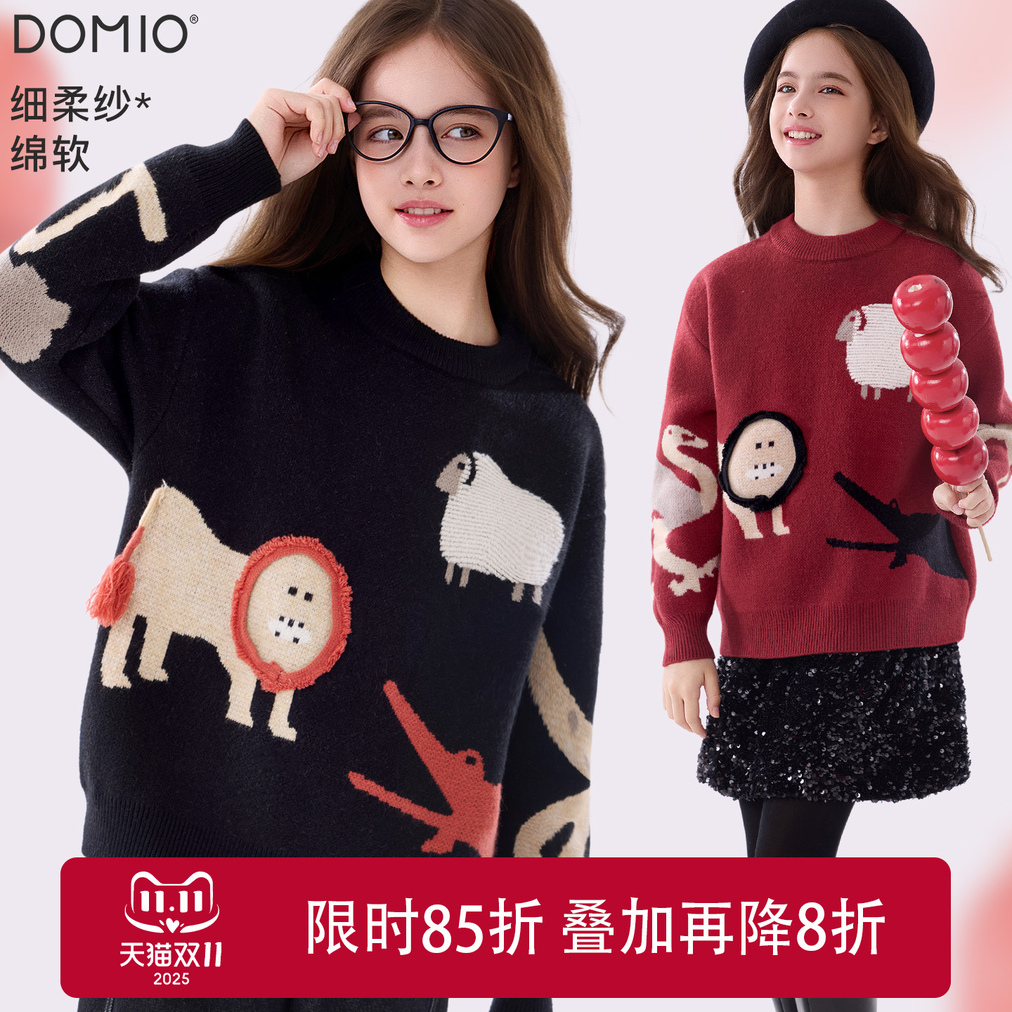 戴维贝拉儿童针织衫2025冬季女童A类羊毛毛衣中大童洋气套头衫