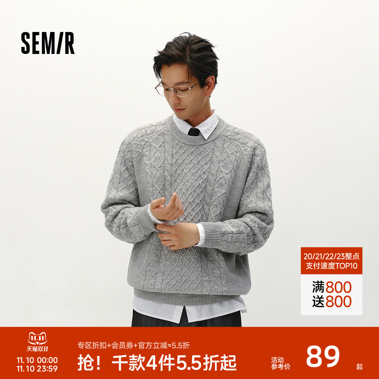 森柔毛衫|森马针织衫男可机洗绞花毛衣纯色内搭上衣冬情侣装宽松