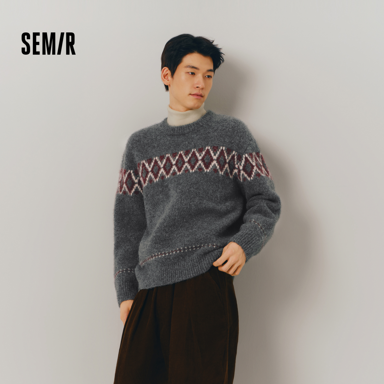 森马毛衫男2025冬季新款费尔岛提花民族风针织衫复古情侣毛衣宽松