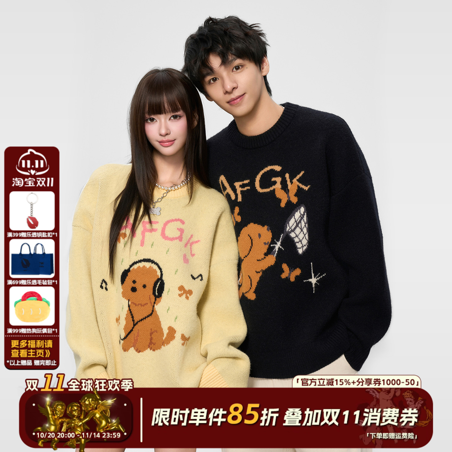 AFGK25FW 等天晴小狗毛衣圆领情侣上衣休闲宽松慵懒感打底针织衫