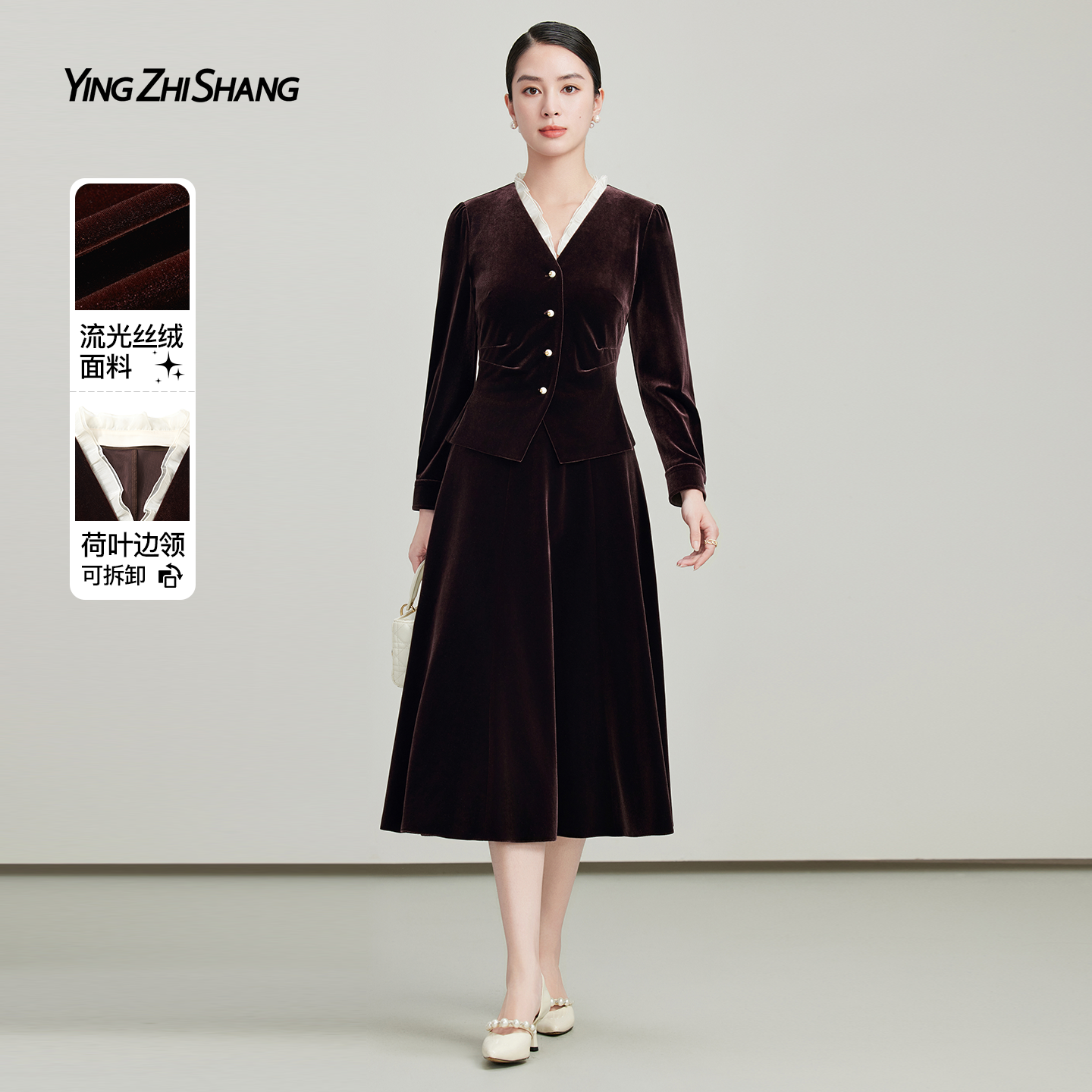 赢智尚小个子精致套装裙2025秋超火减龄高端丝绒V领衬衫半身裙子