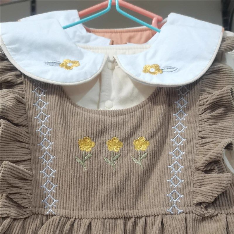 婴儿春秋款连体衣女宝宝秋季套装洋气婴幼儿长袖衬衣背带裤两件套