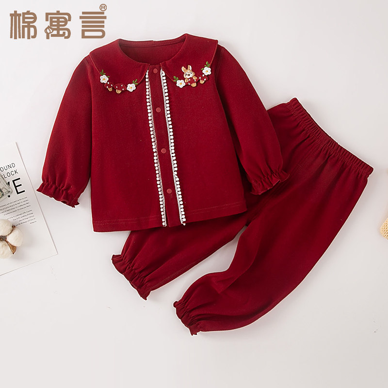 女宝宝套装红色婴儿衣服秋季外出洋气分体女童秋衣秋裤纯棉家居服
