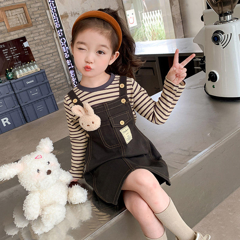 女童抱婴袋裙两件套春秋款女宝宝秋季套装裙子儿童秋装洋装牛仔裙
