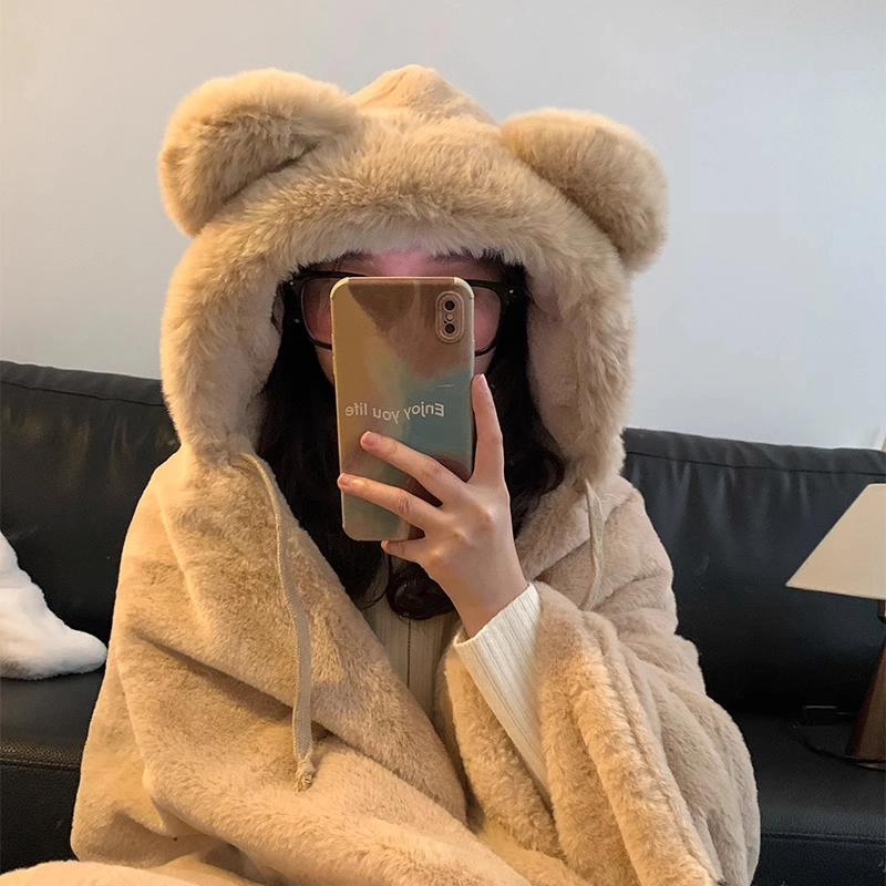 秋冬可爱小熊披肩毛毯学生午睡毯冬季保暖连帽斗篷趴睡披风小被子