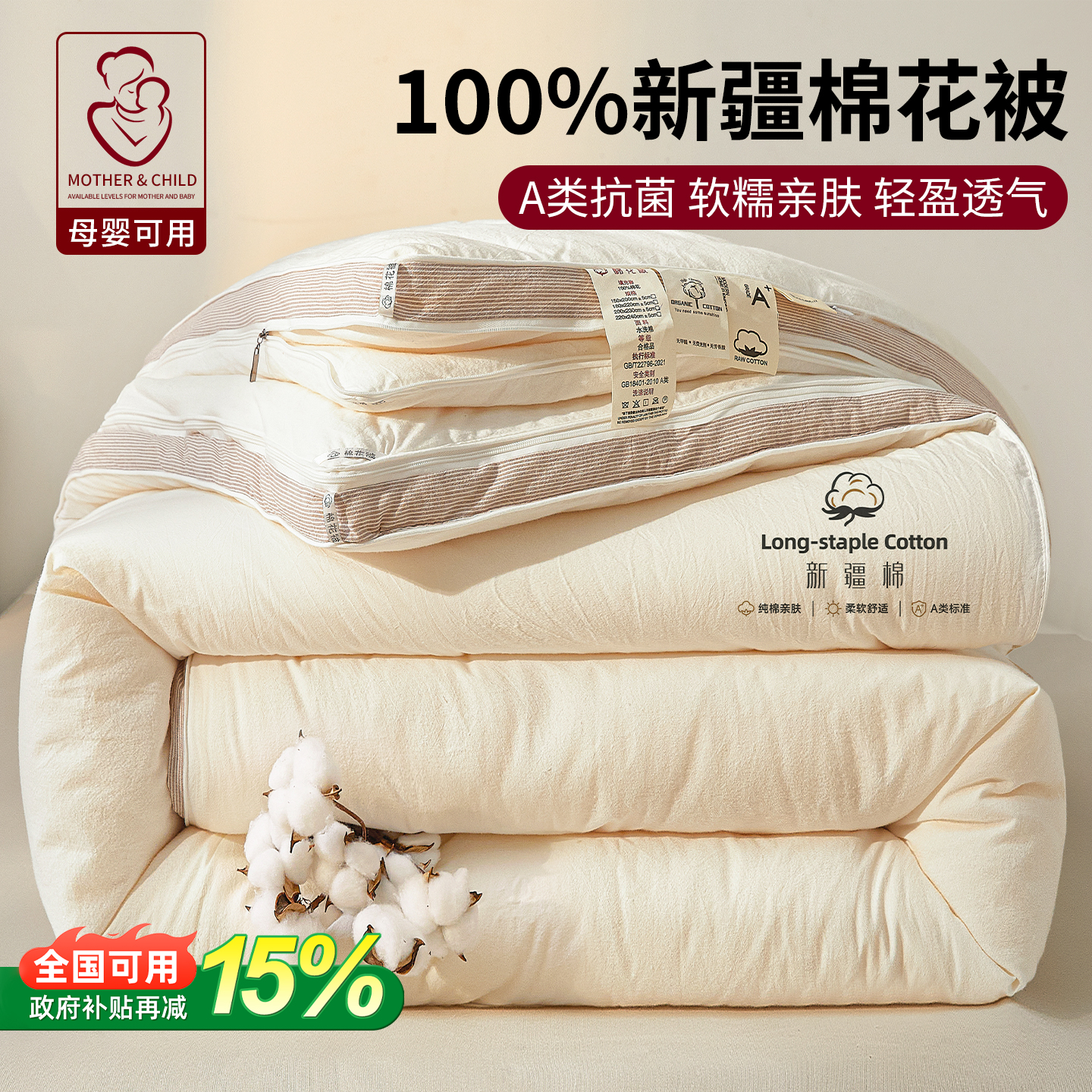 100%新疆棉花被子母被二合一拉链款加厚保暖春秋冬被芯四季通用