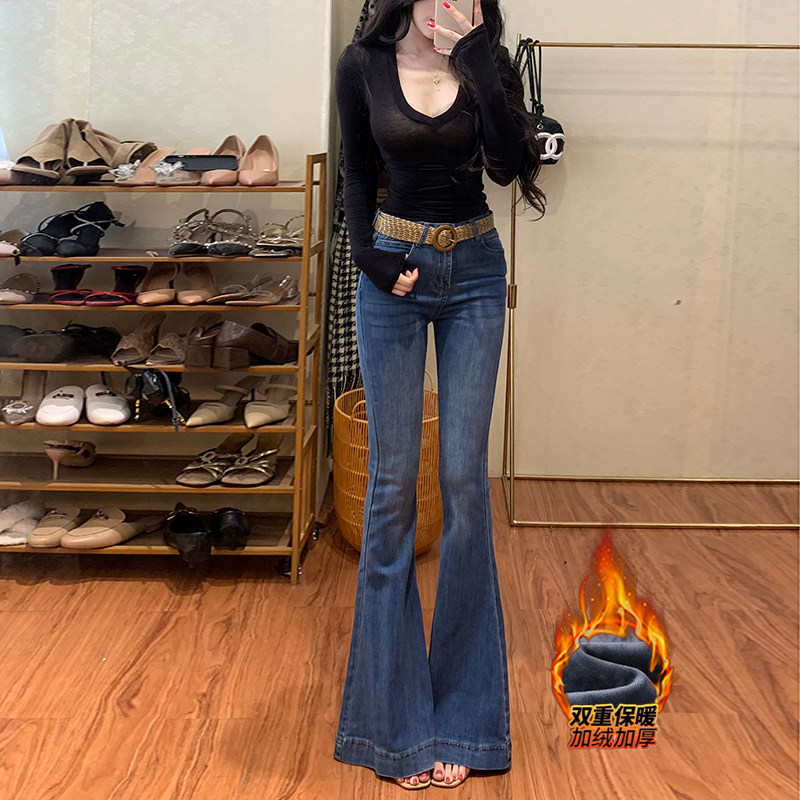 高腰微喇牛仔裤女2025秋冬季新款女士加绒修身显瘦马蹄裤喇叭裤子