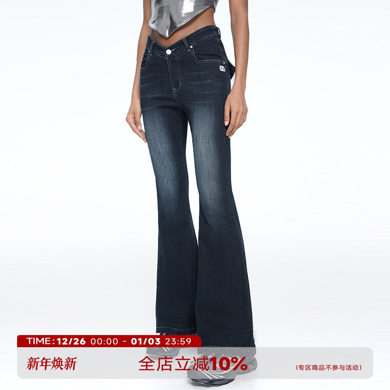 ABMY 致命腰精 原创V腰微喇牛仔裤女水洗复古辣妹显瘦弹力喇叭裤