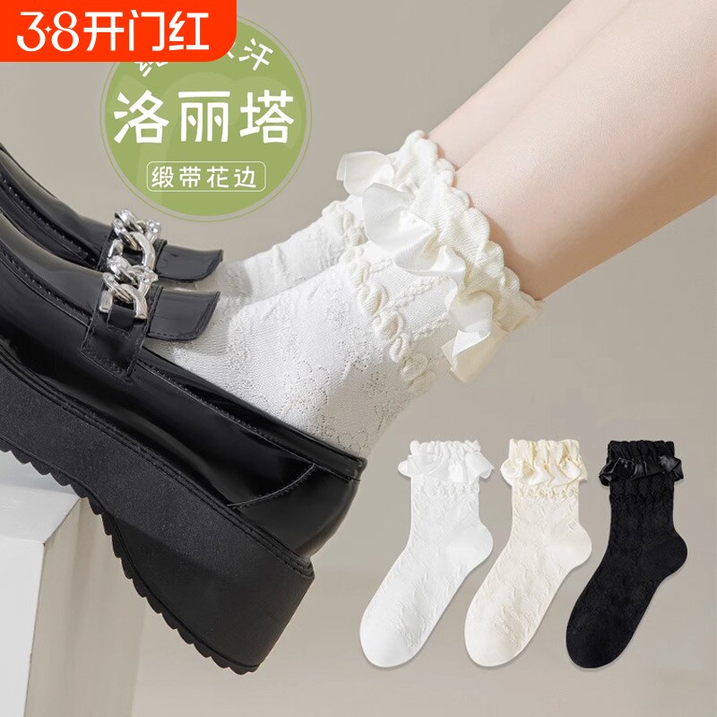 袜子女2025新款爆款蝴蝶结花边jk中筒蕾丝袜夏薄款短袜甜美Lolita