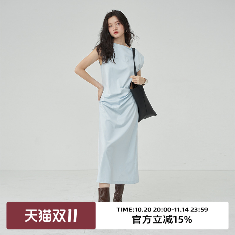 特价微瑕疵,原other女修身版型缎面光泽垂感无袖连衣裙夏季新品