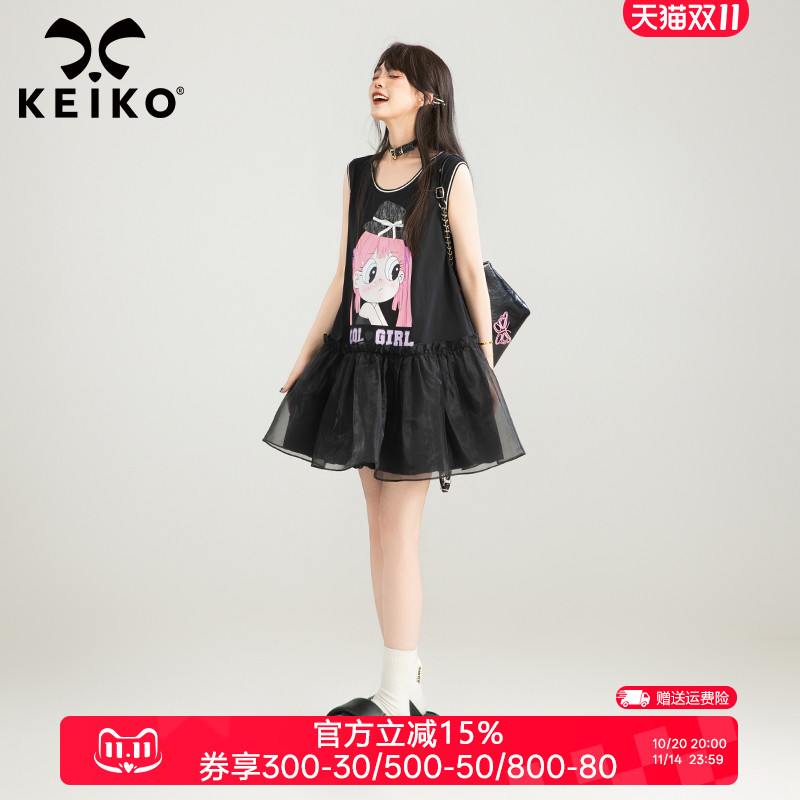 KEIKO 日系卡通印花圆领无袖连衣裙夏季公主风小个子背心裙蓬蓬裙