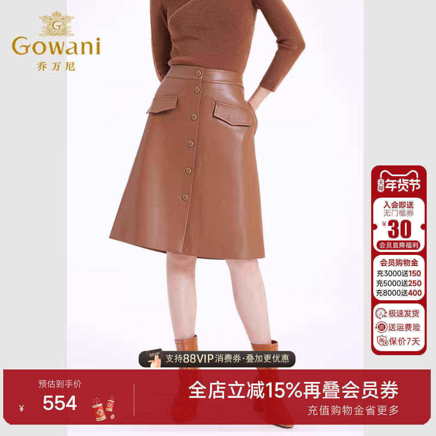 乔万尼A字半身皮裙商场同款新品复古摩登气质精致优雅设计EF4D117