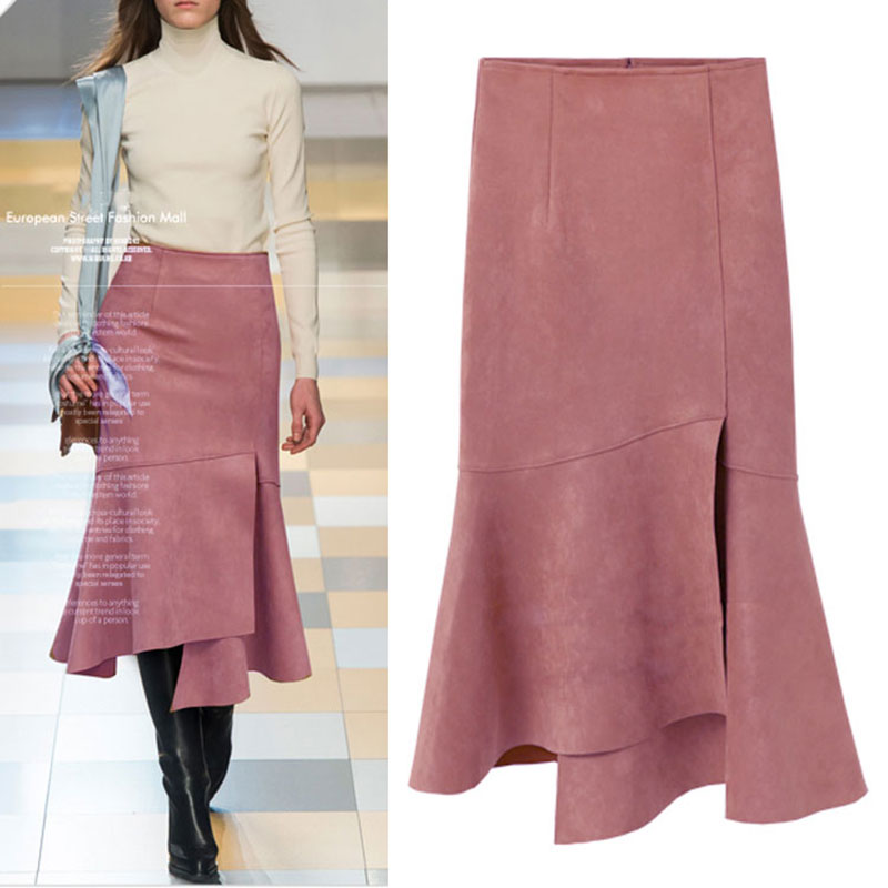 长裙女秋冬皮裙女2025新款 高腰包臀裙麂皮绒不规则冬裙女中长款