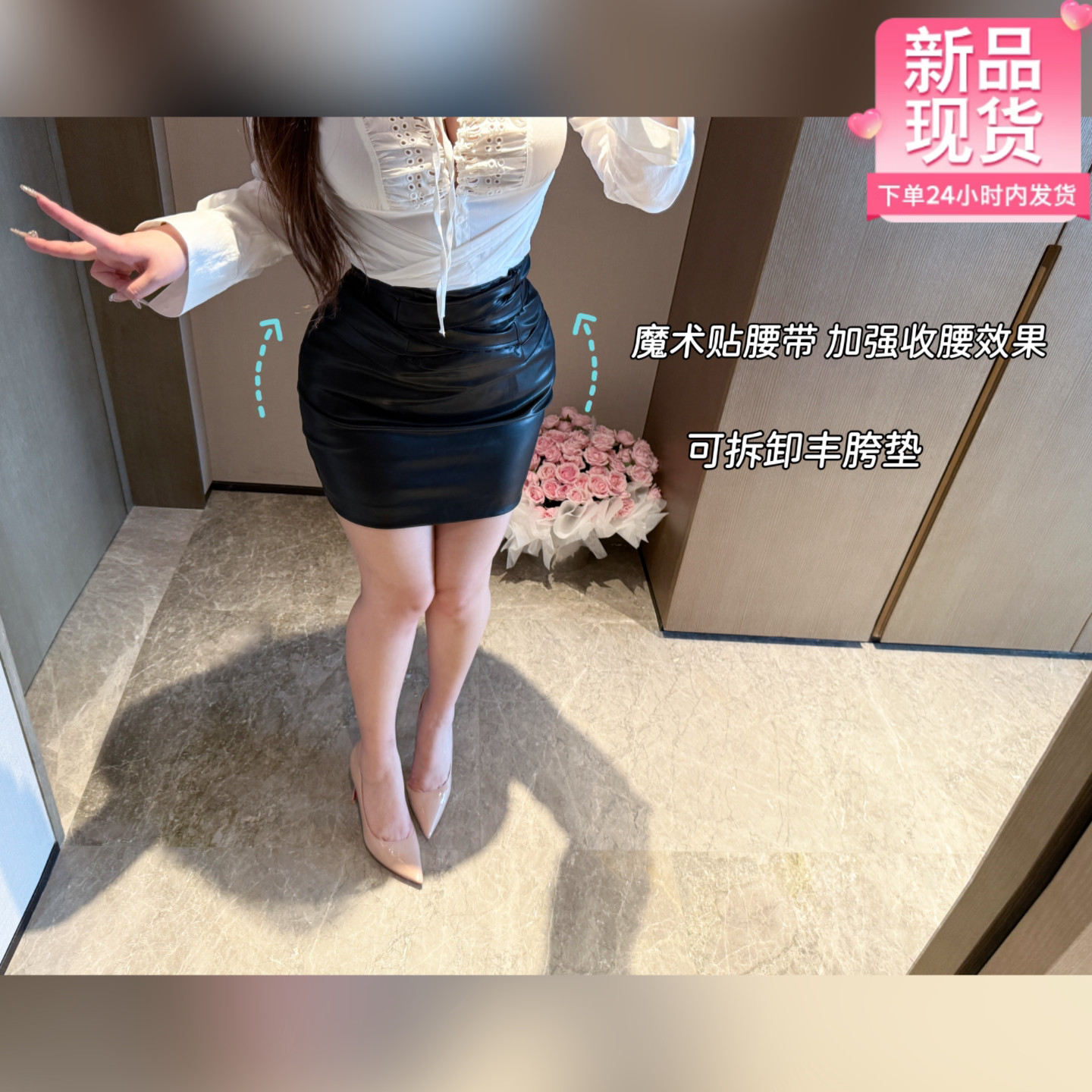 米白包臀小皮裙2025新款秋冬女高腰OL短裙超火pu皮半身裙显瘦性感