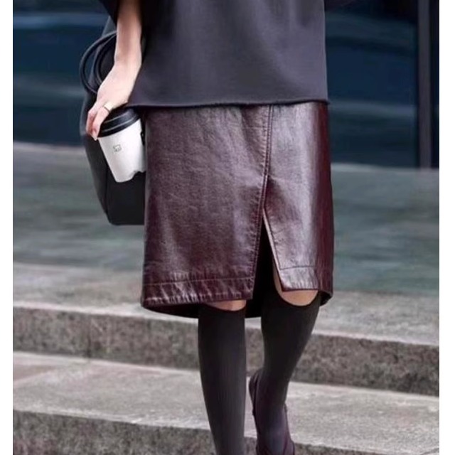 芬展皮裙半身裙秋冬新品高腰显瘦开叉一步裙大码pu皮包臀裙中长款