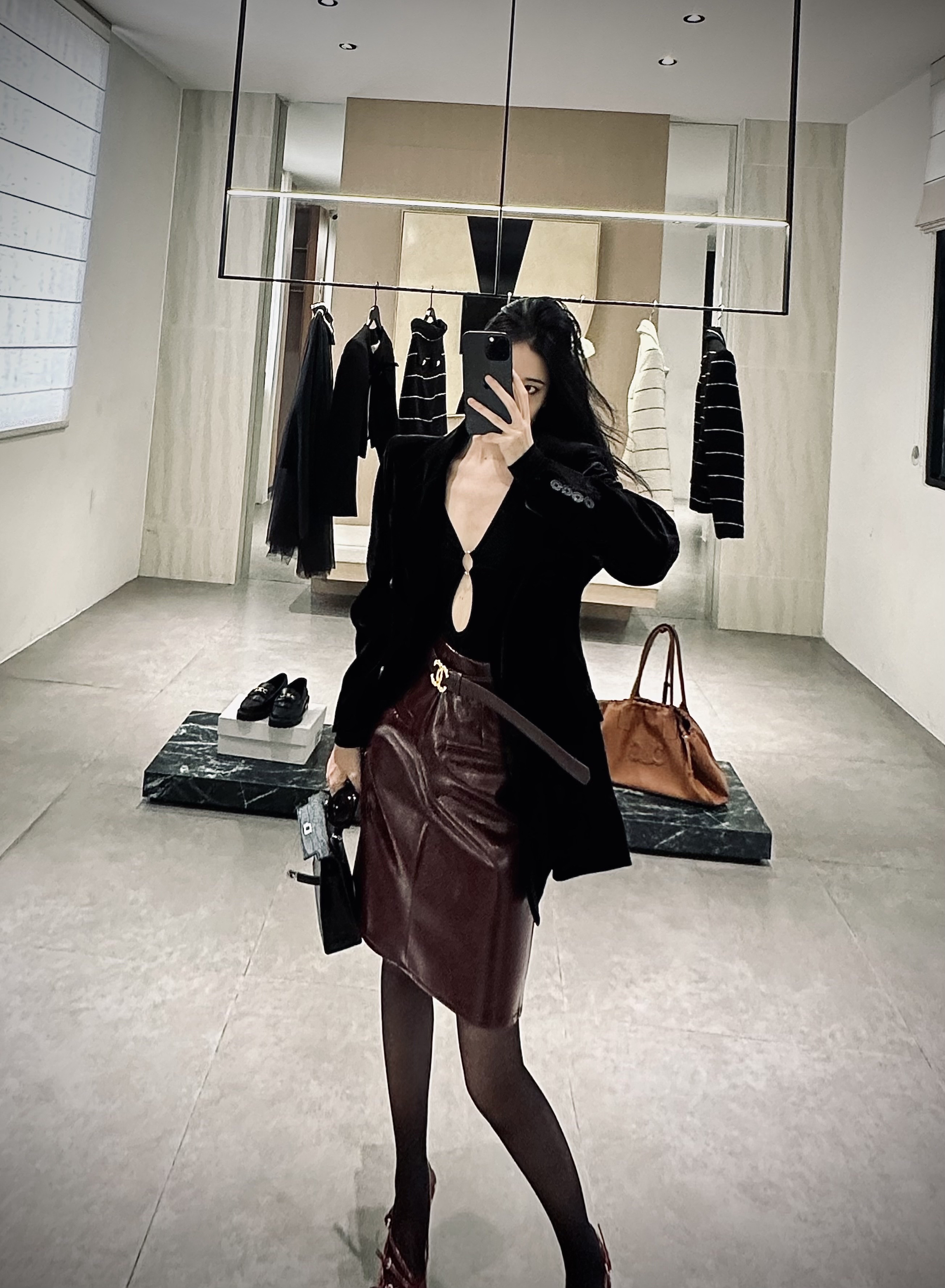 ISGRX 声色犬马 原创设计安可拉红短裙气质御姐秋冬皮裙高级感