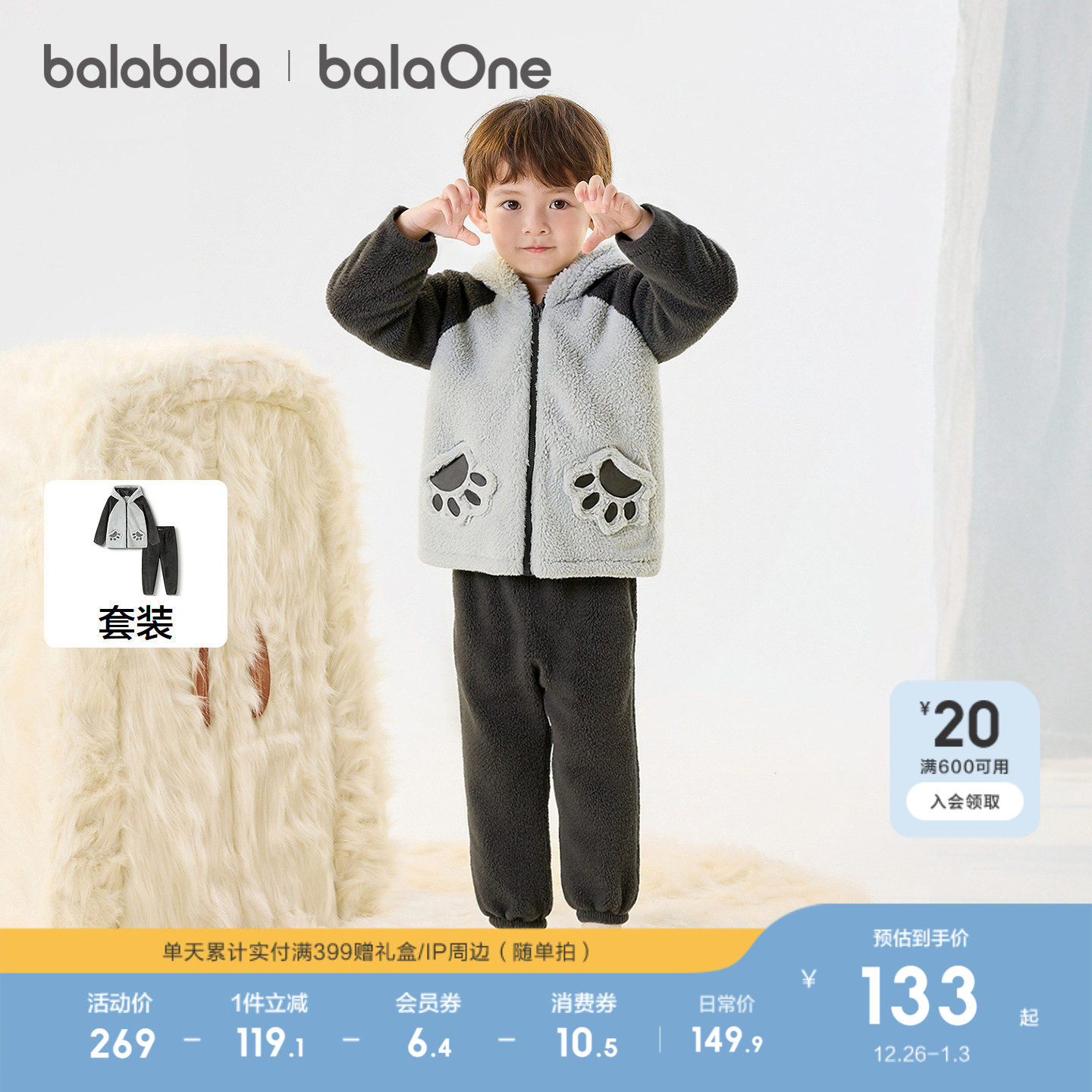 巴拉巴拉童装儿童珊瑚绒套装冬季加厚保暖宝宝睡衣萌男女童家居服