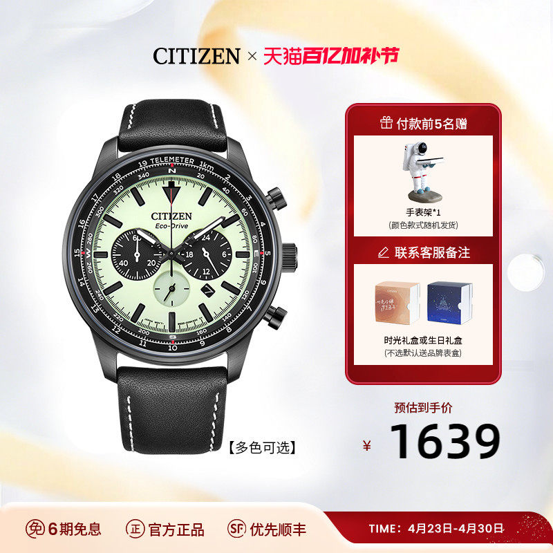 西铁城官方旗舰店FF系列飞行员军工风户外运动夜光男士手表CA4505