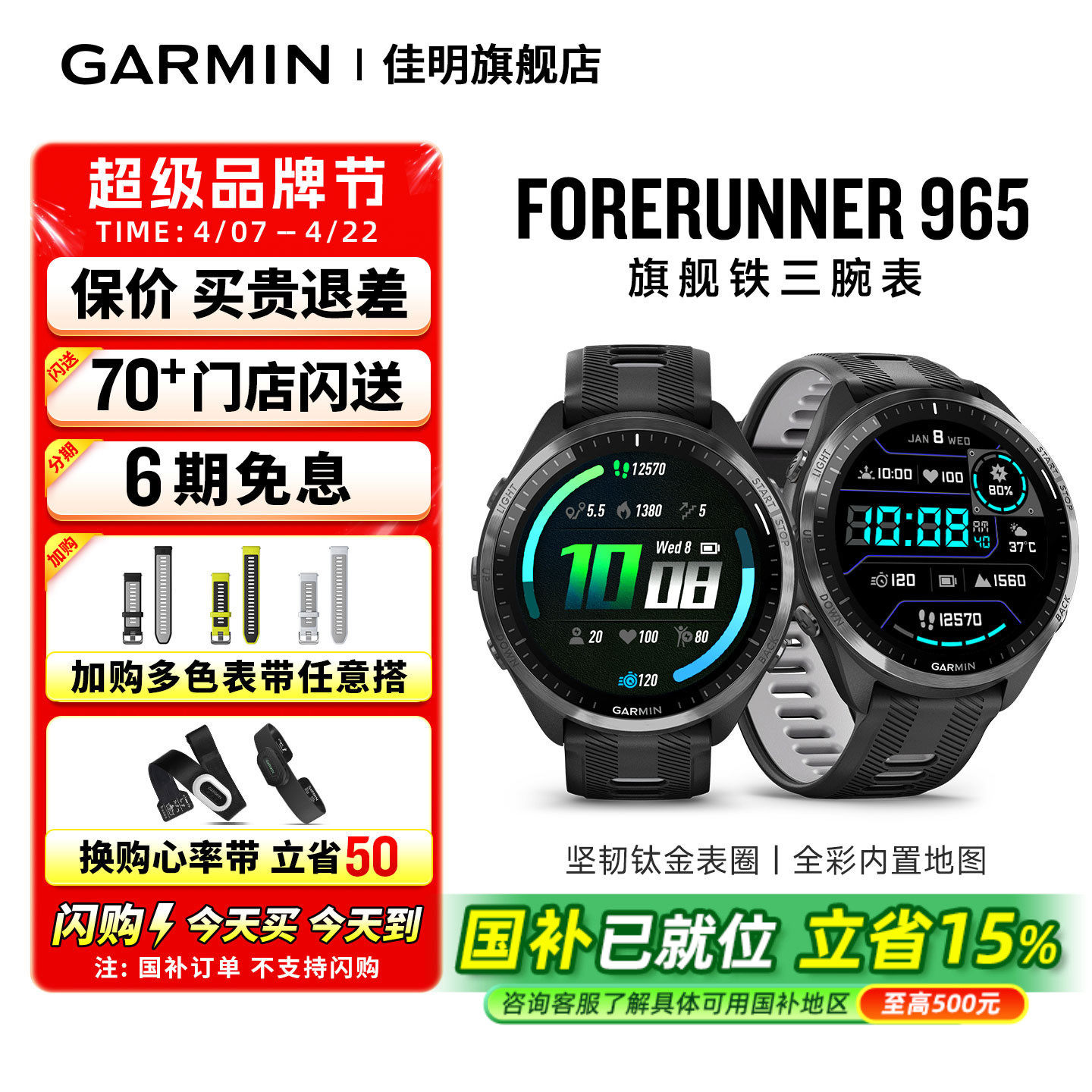 【补贴15%】Garmin佳明Forerunner965户外运动手表铁三游泳跑步骑行双频定位地图导航心率血氧睡眠手环