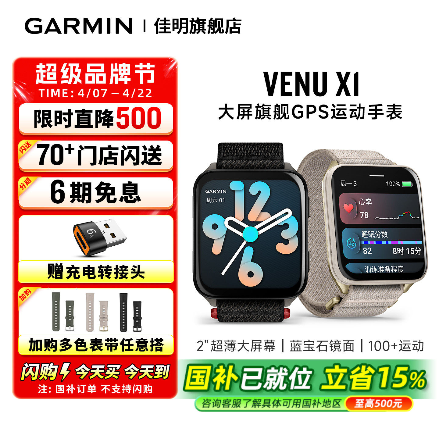 【补贴15%】Garmin佳明Venu X1智能运动手表健康监测户外跑步 LED手电筒GPS地图导航蓝牙通话高尔夫骑行健身