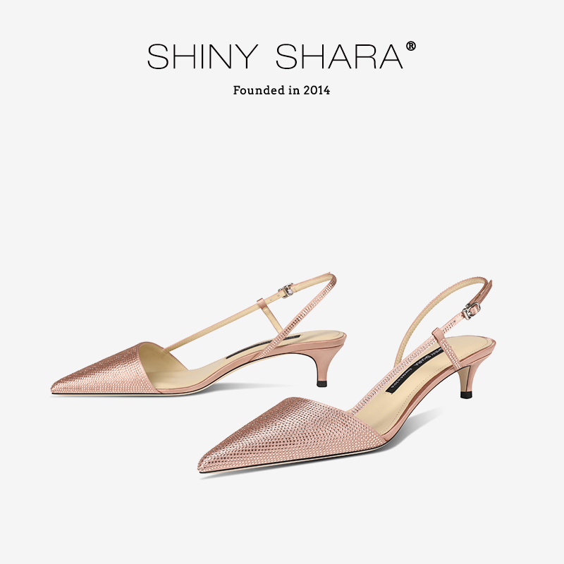 Shiny Shara/诗莎2025夏季新款细跟中跟尖头侧空凉鞋女夏季单鞋女