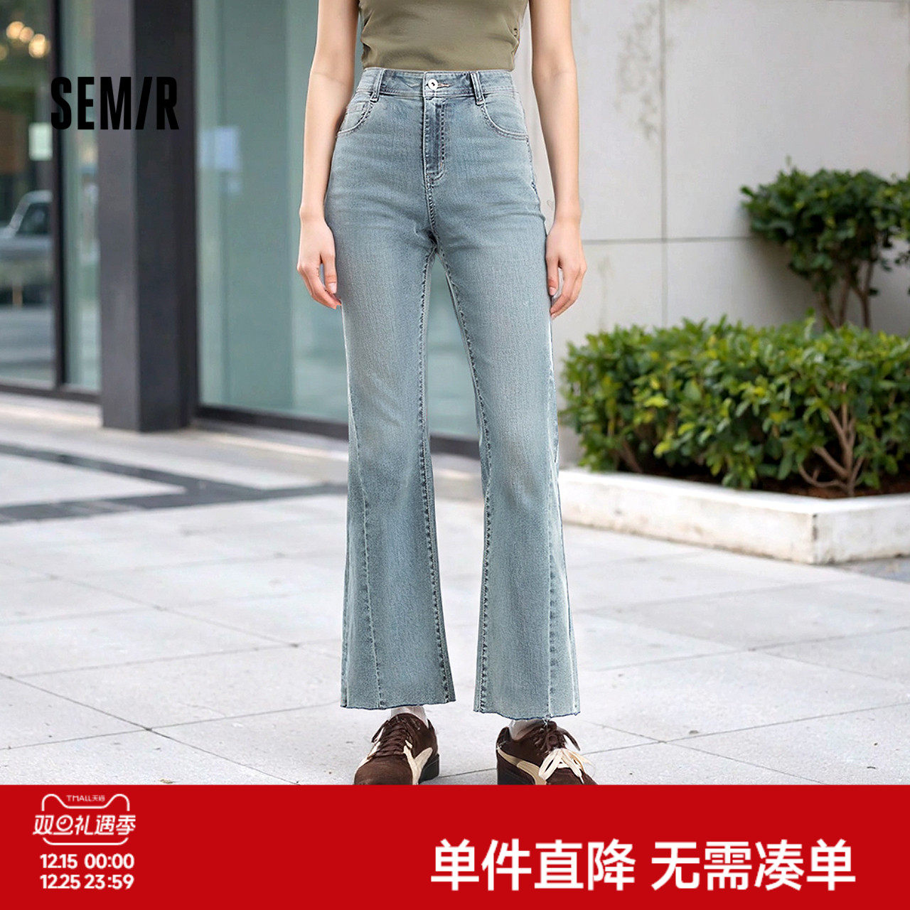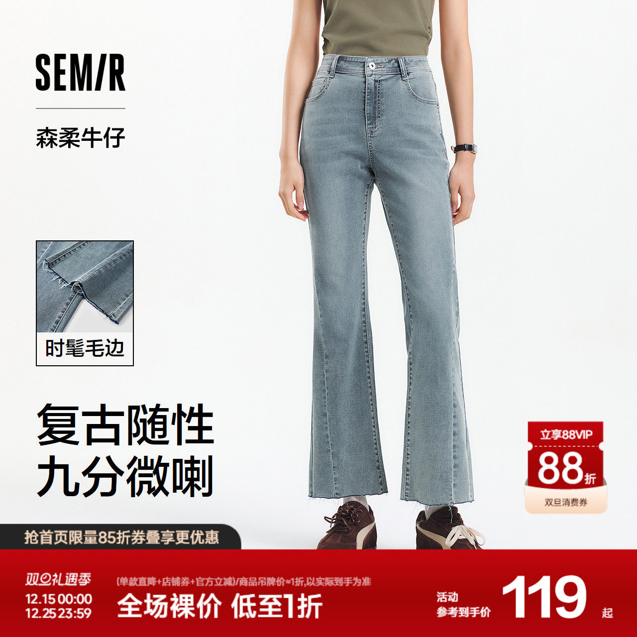 森柔牛仔|森马牛仔裤女小个子九分裤2025夏季新款毛边喇叭裤时髦