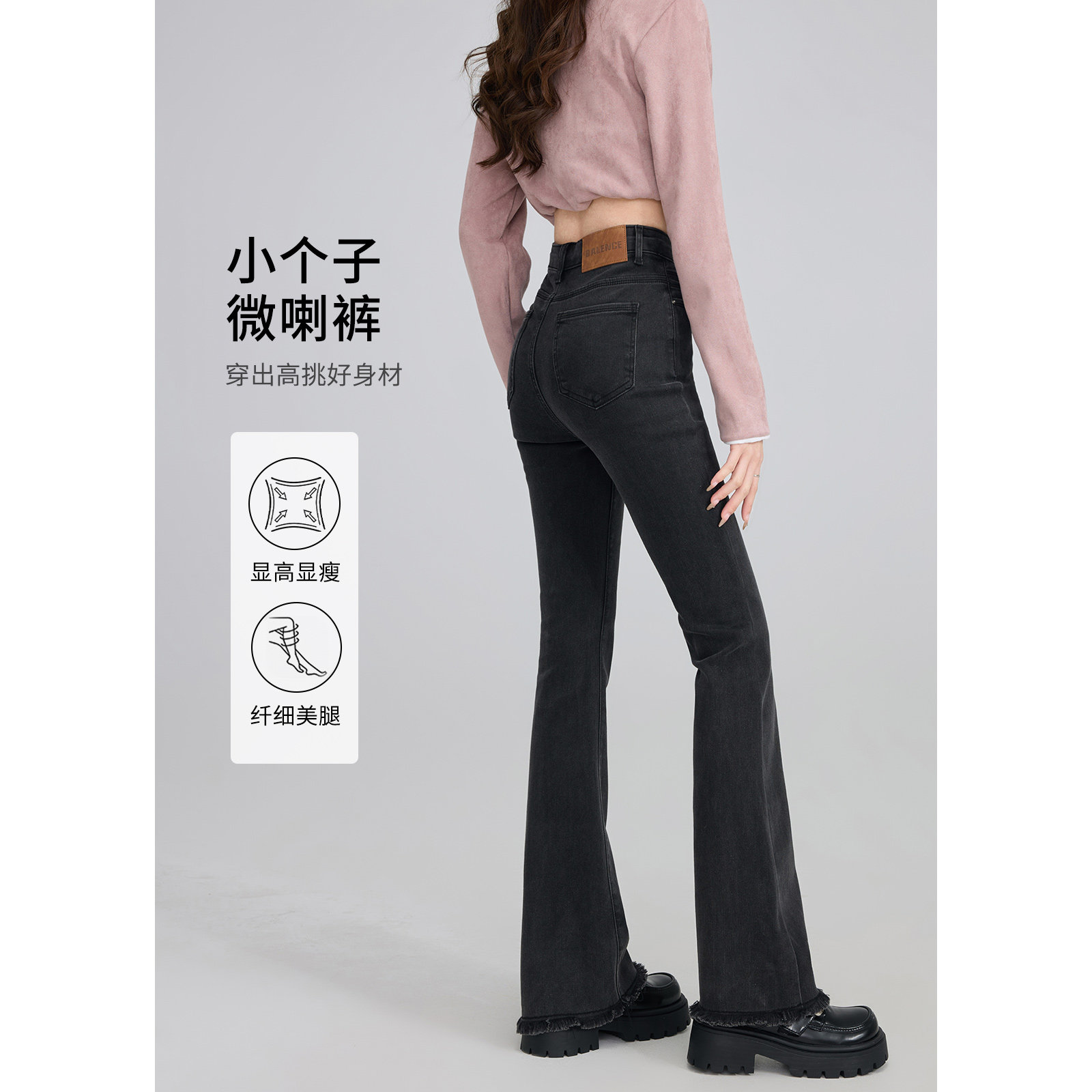 烟灰色高腰微喇叭牛仔裤女2025年春夏新款紧身毛边显瘦小个子九分