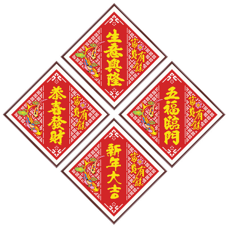 十字绣2023新款窗花福字生意兴隆五福临门恭喜发财小件手工自己绣