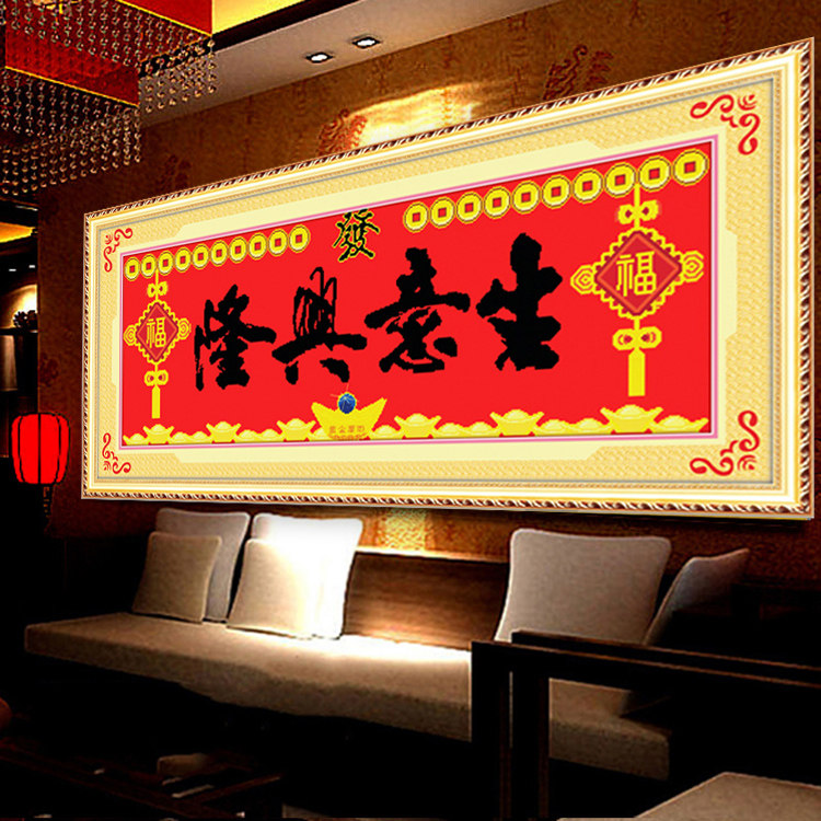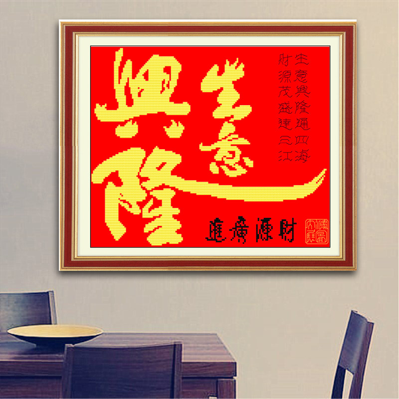 生意兴隆十字绣新款客厅简单书法字画大小幅适合新手简单线绣挂画