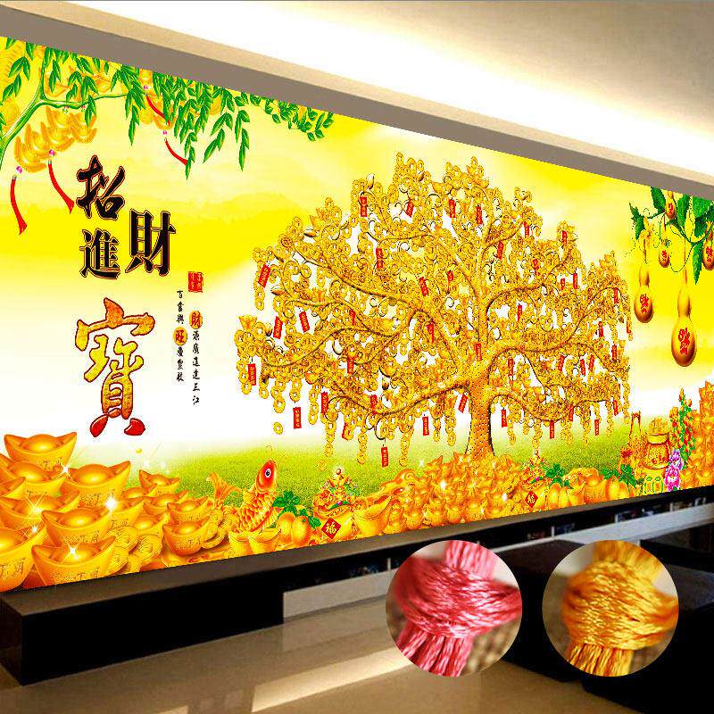 印花线绣十字绣客厅生意兴隆摇钱树招财进宝新款大幅满绣棉线丝线