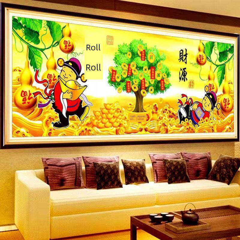 5d生意兴隆钻石画2026新款财神爷发财树满粘贴砖石秀十字绣办公室