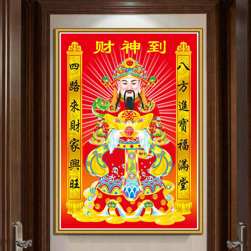财神爷生意兴隆2026新款手工刺绣十字绣线绣客厅竖版玄关财源广进