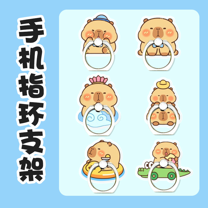 手机指环扣支架可爱卡通水豚手机支架粘贴指环扣桌面手指支架旋转