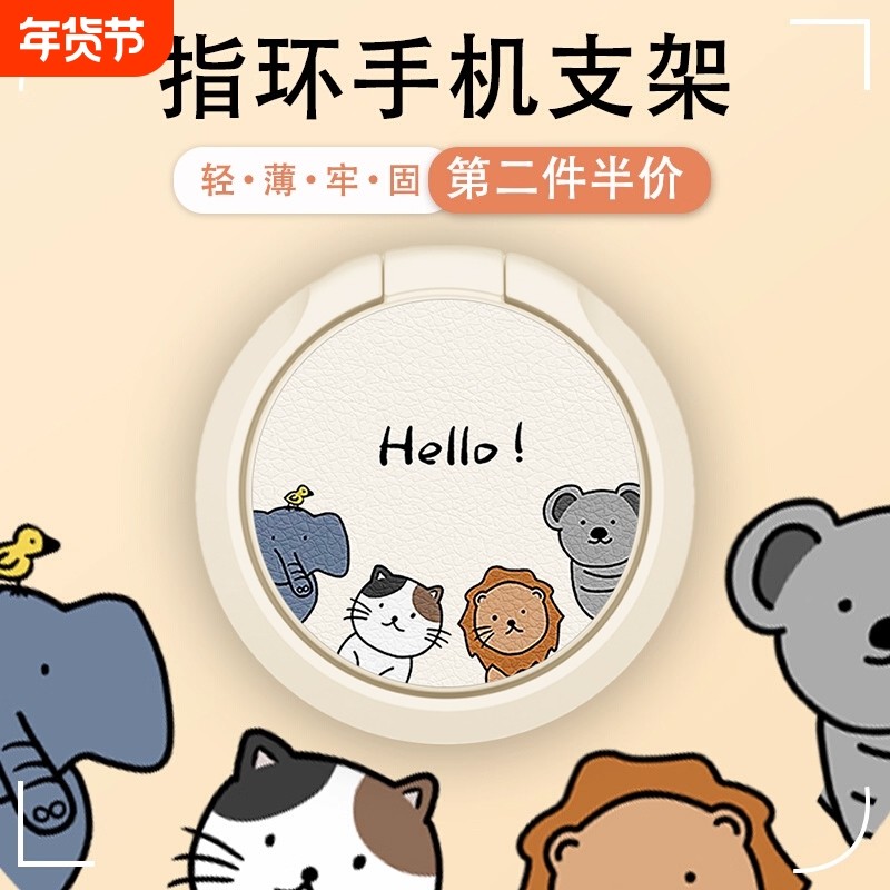 手机支架指环扣车载磁吸新款象牙白粘贴式可爱卡通手环男女款指环支架懒人手机便携单个背贴便携可爱追剧神器