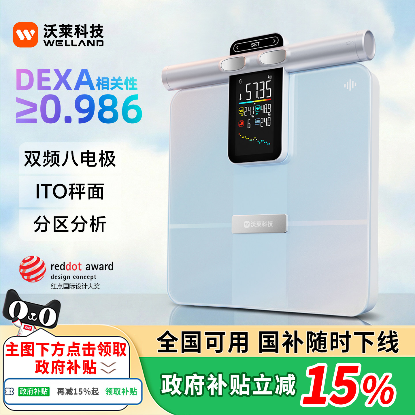 【国家补贴】沃莱P7MAX智能八电极体脂秤家用体重秤健身减肥专用