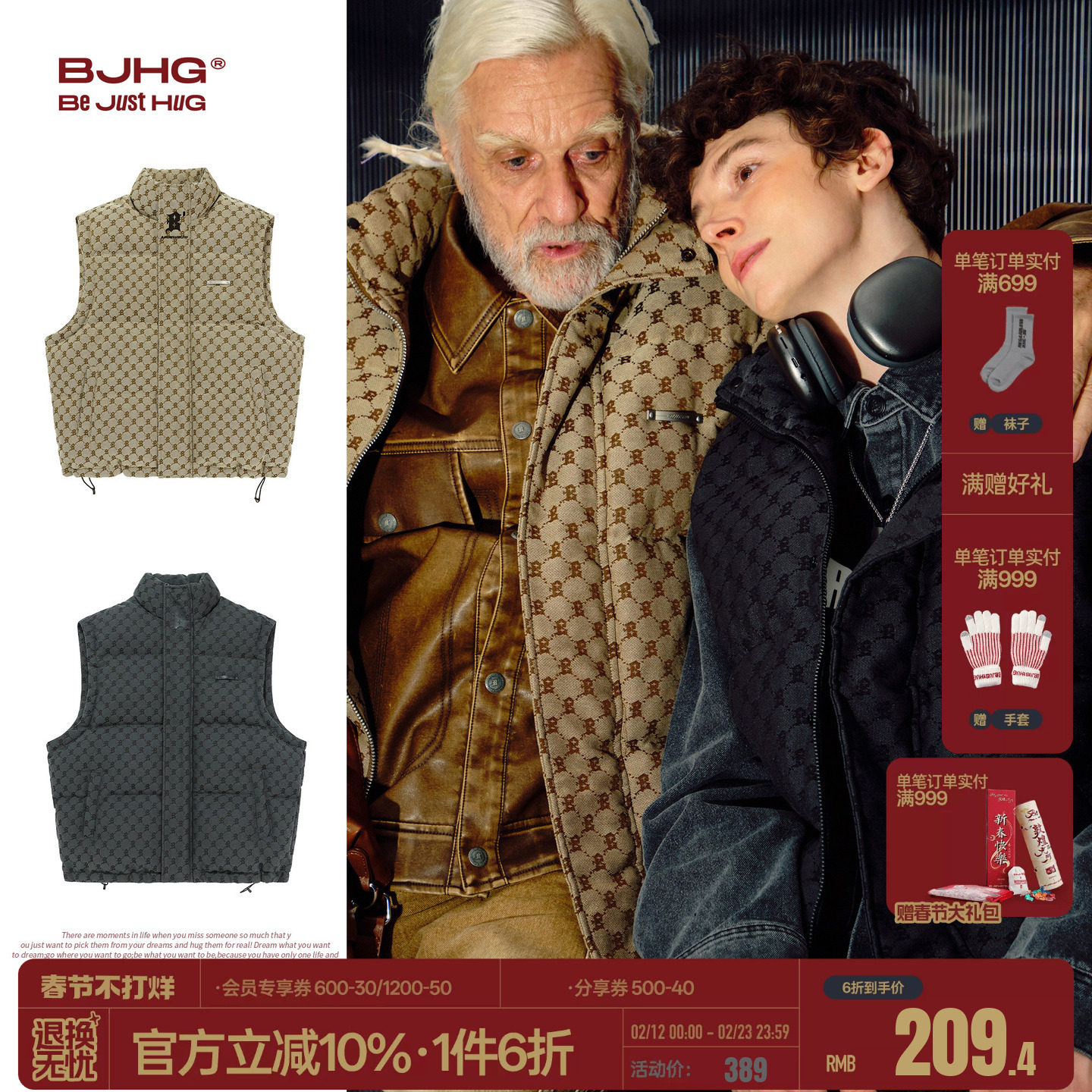 BJHG不计后果美式老花羽绒马甲外套男款冬季叠穿老钱风羽绒服外套