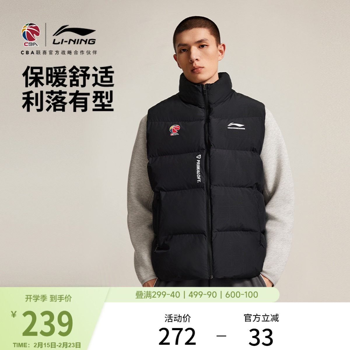 李宁P棉马甲男士冬季官方新款CBA立领夹棉背心男装保暖上衣运动服