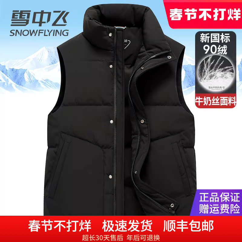 雪中飞男士羽绒马甲中老年爸爸装秋冬季居家内搭保暖鸭绒背心坎肩