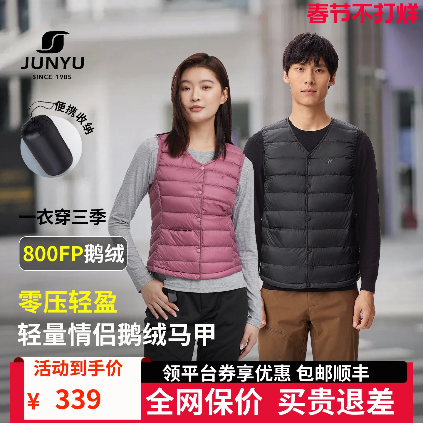 君羽800蓬羽绒马甲男女轻便羽绒内胆冬季内搭保暖鹅绒背心V领003