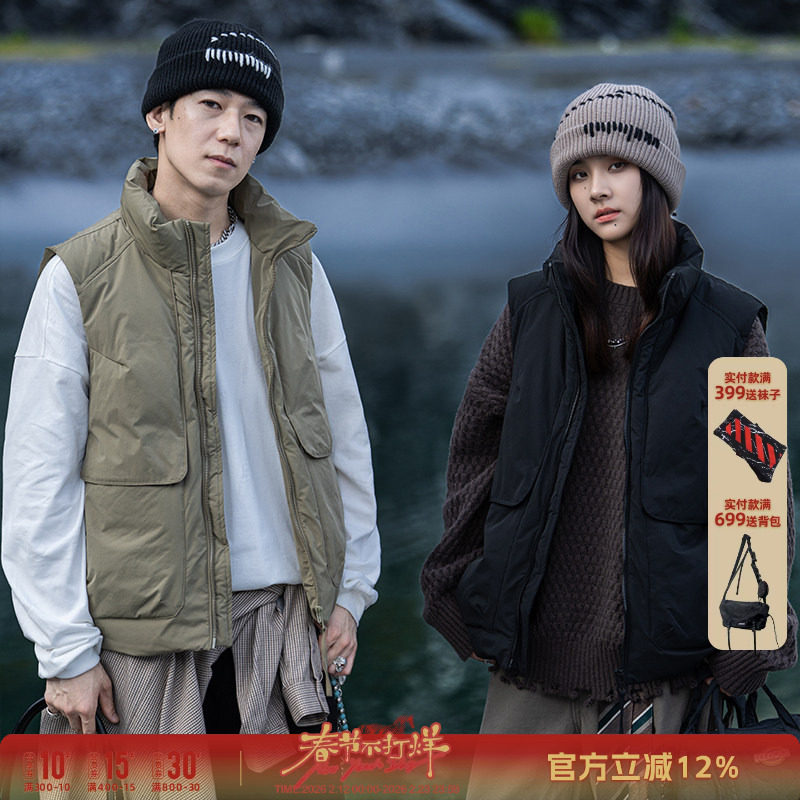 AOGZ工装羽绒马甲男女同款秋冬季抗寒显瘦宽松潮牌外穿坎肩羽绒服