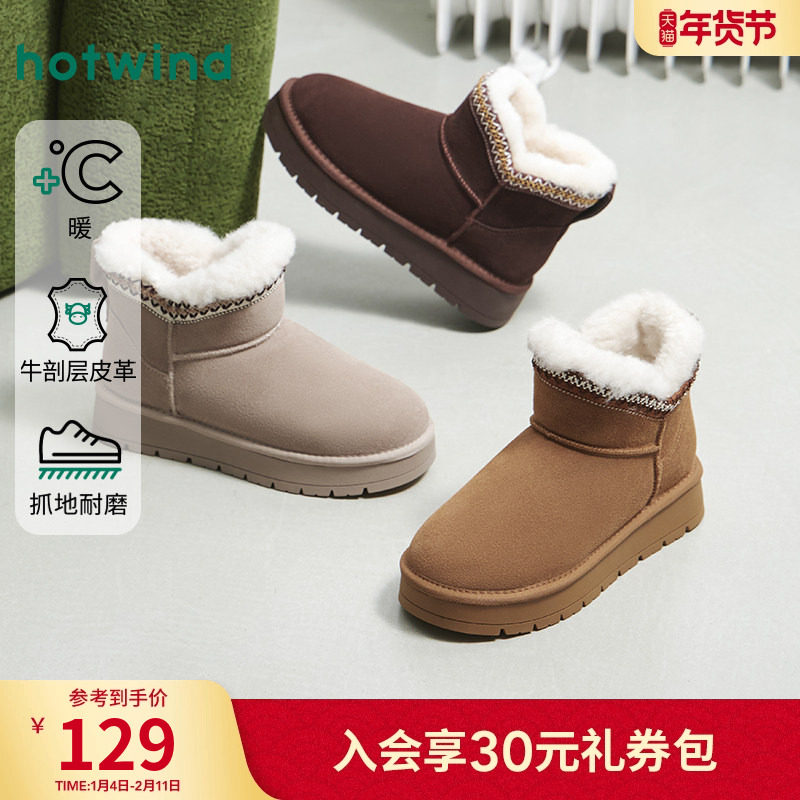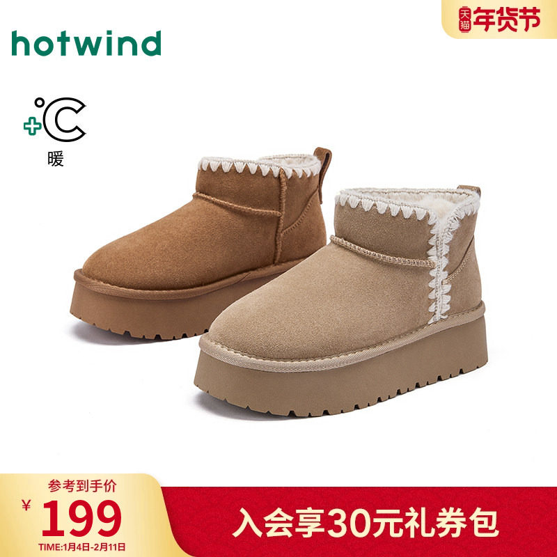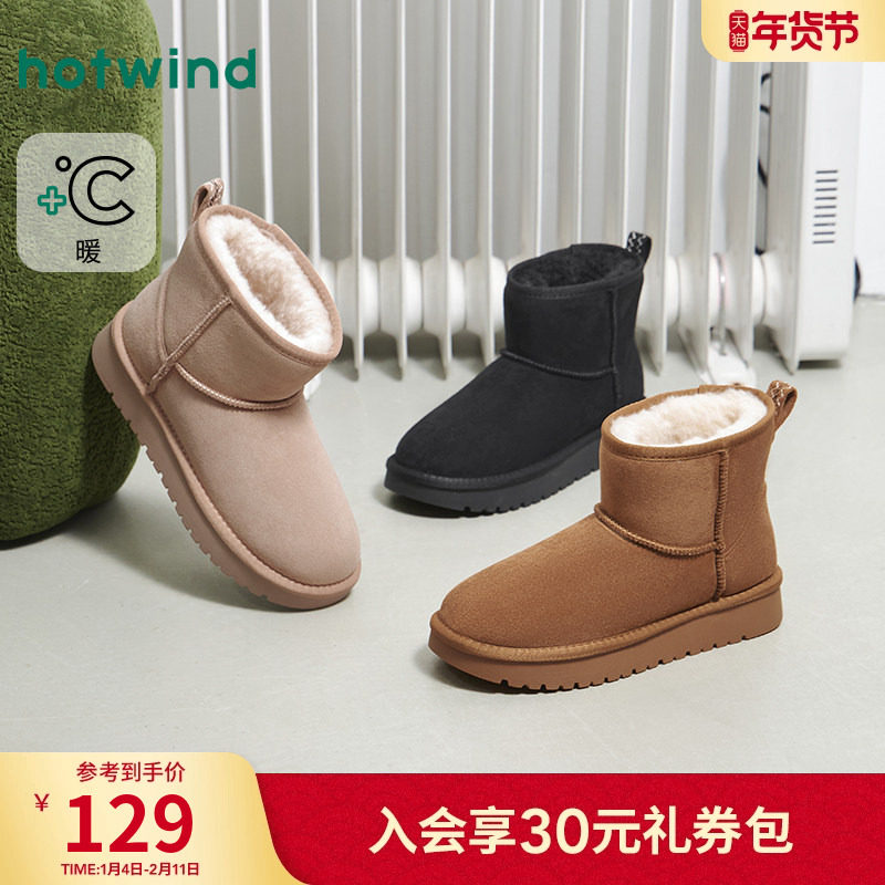 热风厚底雪地靴女款2025年冬季新款棕色短筒加绒棉鞋百搭短靴子