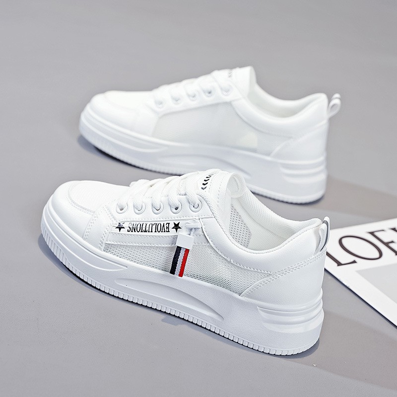 2025春夏新款小白鞋女薄款真皮厚底百搭透气网面网鞋运动休闲板鞋