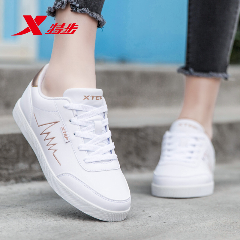 特步女鞋板鞋正品新款小白鞋女士皮面秋季休闲鞋运动鞋女官方旗舰
