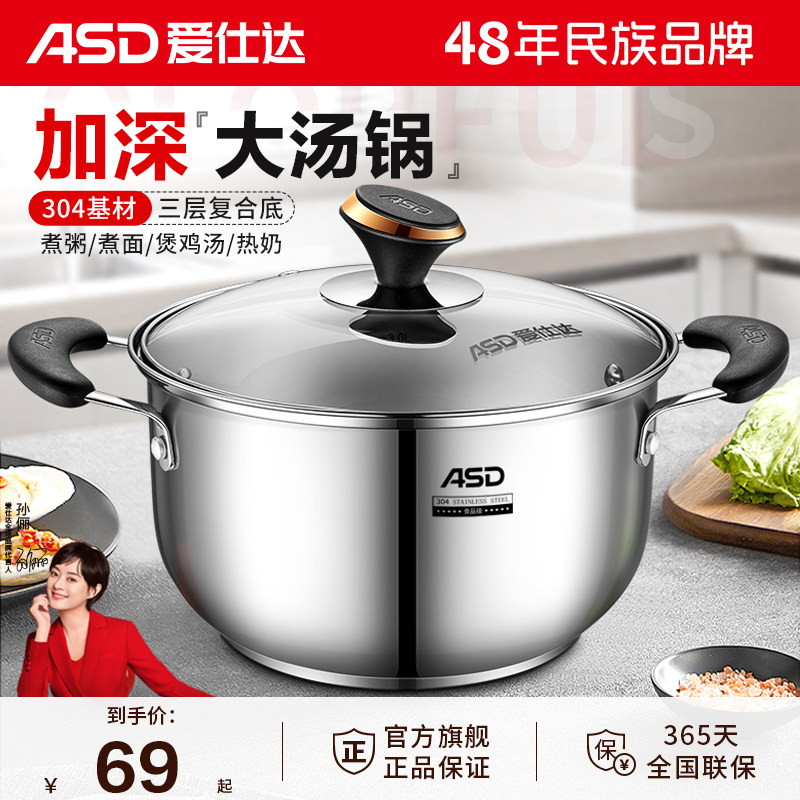 爱仕达汤锅304不锈钢加厚家用蒸锅煮粥锅煮锅锅具燃气电磁炉炖锅