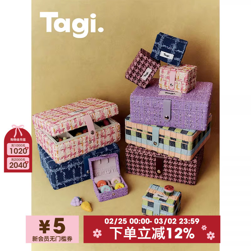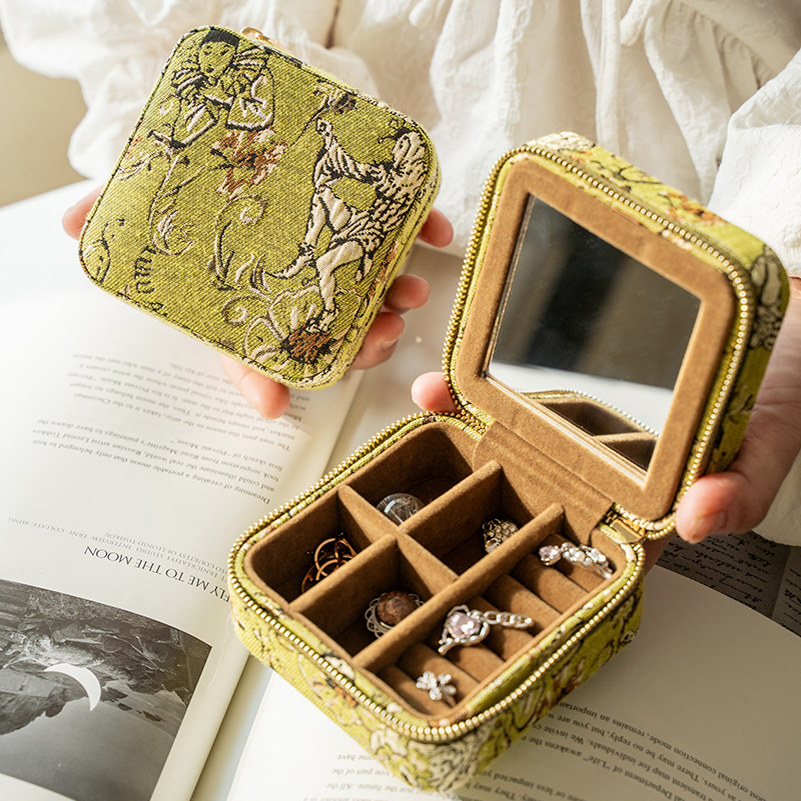 Tagi.首饰枕头提花首饰盒大容量复古便携mini双层子母收纳盒