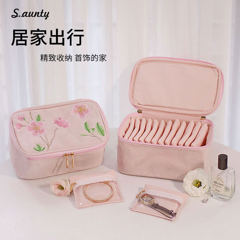 首饰盒新款国风刺绣盒大容量便携黄金首饰收纳袋防氧化手镯手串包